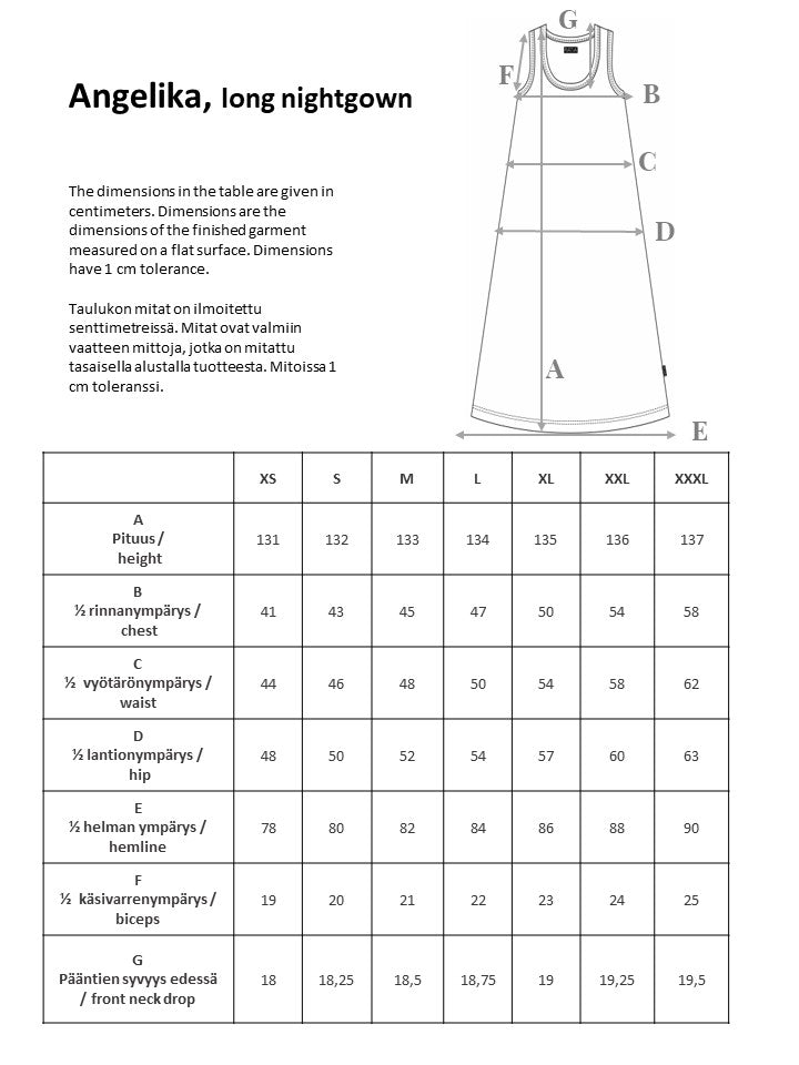 Women's sleeveless tricot nightgown. The model of the nightgown is flared downwards. The length of the nightgown is approximately 133 cm in size M. The material is a comfortable and easy-care cotton-elastane. The product is made in Portugal.