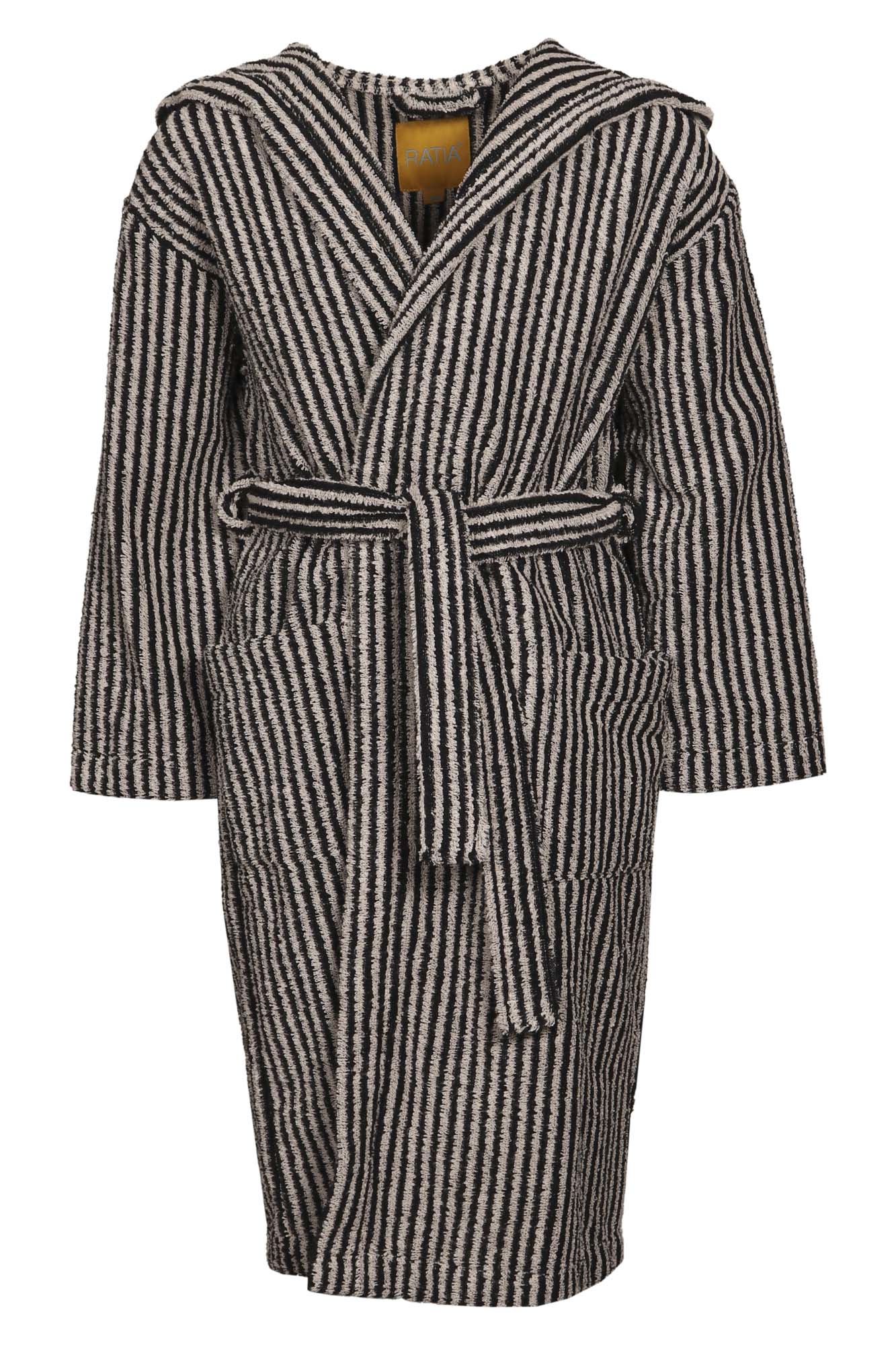 Kid's Terry Bathrobe Stripe, Black/Sand