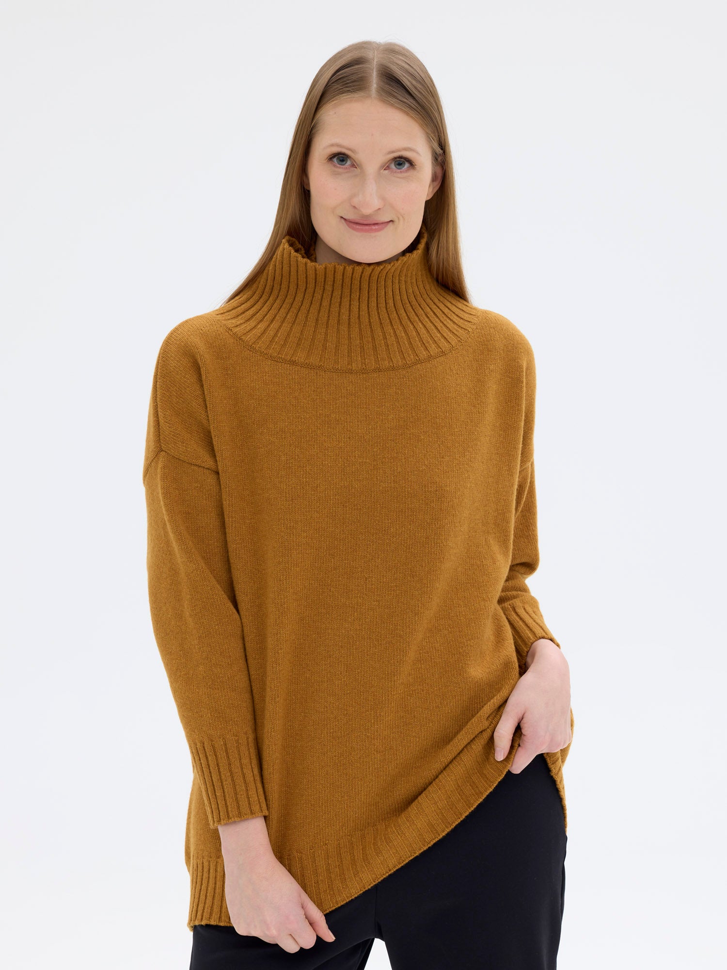 Mila neulepaita on rento ja tyylikäs, maanläheisessä kurkuman sävyssä. Monikäyttöisessä neulepaidassa materiaalina on laadukas 80 % villa ja 20 % polyamidi sekoitus. Tämä neulepaita päällä kylmä ei pääse puraisemaan, sillä neulos on tiheää ja paksuhkoa, ja mukavan tuntuinen päällä, materiaali ei kutita ihoa.