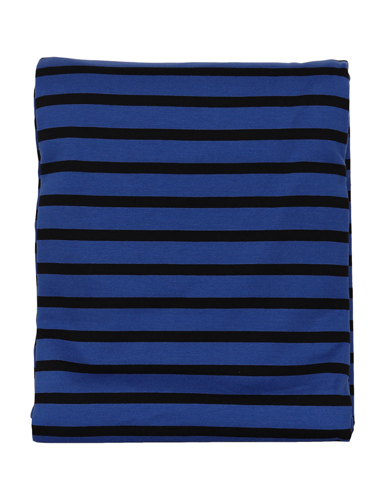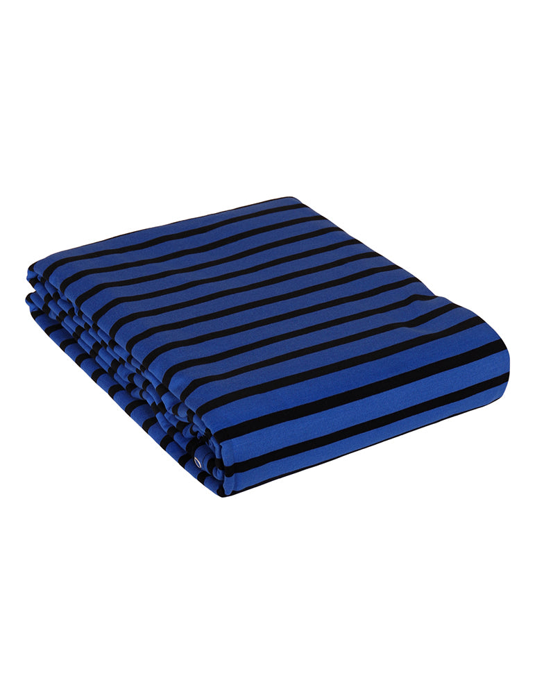 Ratian sini-musta raidallinen trikoolakana on ihanan pehmeä ihoa vasten. Pussilakanan koko 150 x 210 cm ja tyynyliinan koko 50 x 60 cm. Pussilakana siliää hyvin kuivuessaan ja lakanan alahelman nepparikiinnitys pitää peiton paikallaan.