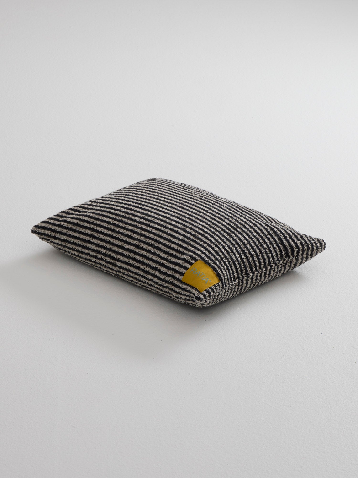 It is nice to relax on the sauna benches with a sauna pillow under your head. The pillow material is 90% cotton, 10% polyester, filling 100% polystyrene. The pillow's stripe width is 5 mm. The pillow is hand washable. Made in Portugal.