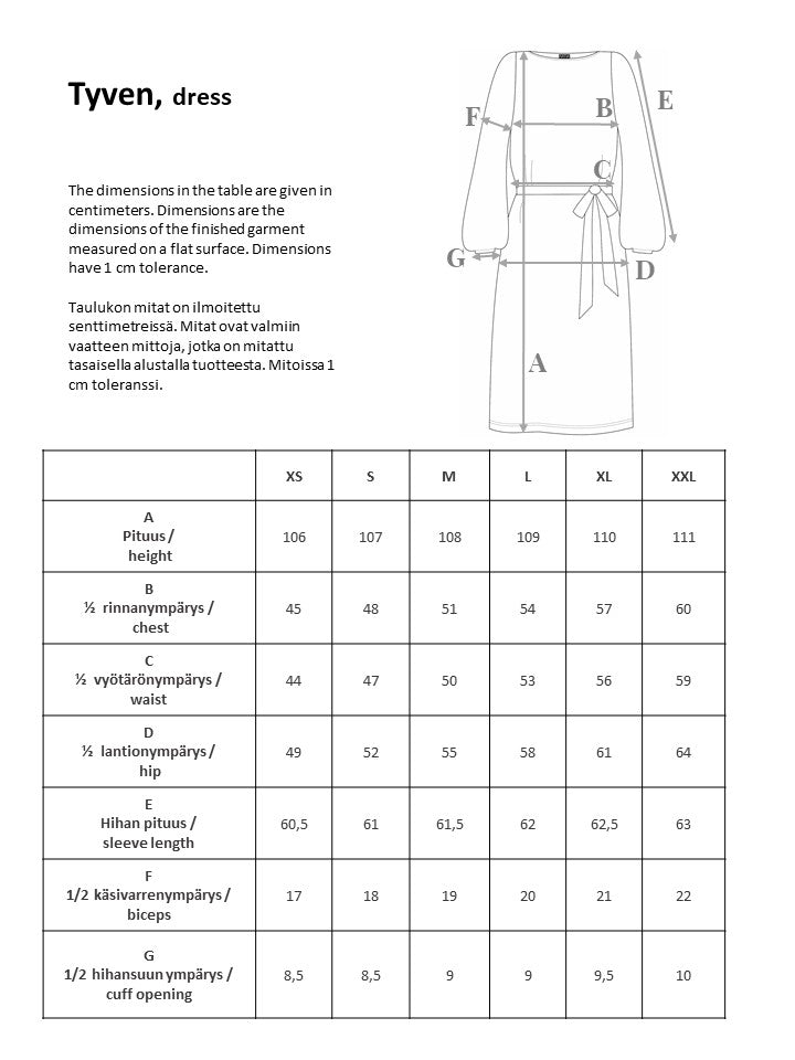 A stylish and striking dress for women, suitable for both work and parties. Long sleeves, slightly puffy at the wrists, and a wide belt. The length of the dress is approximately 108 cm in size M. The material is 100% cotton.