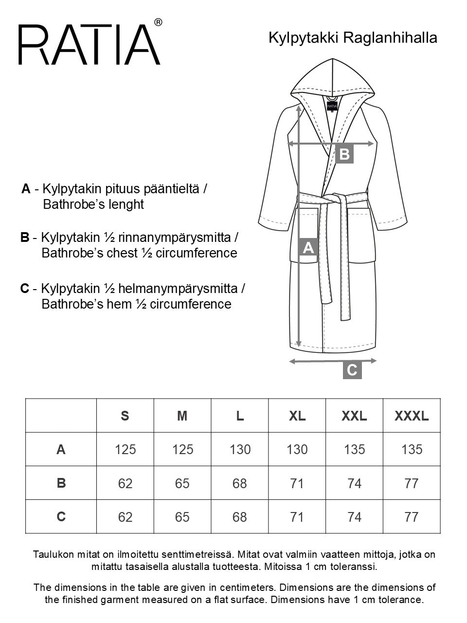 Striped bathrobe made of soft velour. The outside of the bathrobe is made of soft velour, and the inside is made of absorbent terry cloth. This warm bathrobe is comfortable to wrap up in after a sauna or shower. The bathrobe has raglan sleeves, front pockets and a hood. Stripe width 35 mm. Note! The bathrobe is unisex and made according to the men's size chart. If you want to buy the jacket for a woman, choose one size smaller than usual. Made in Portugal.