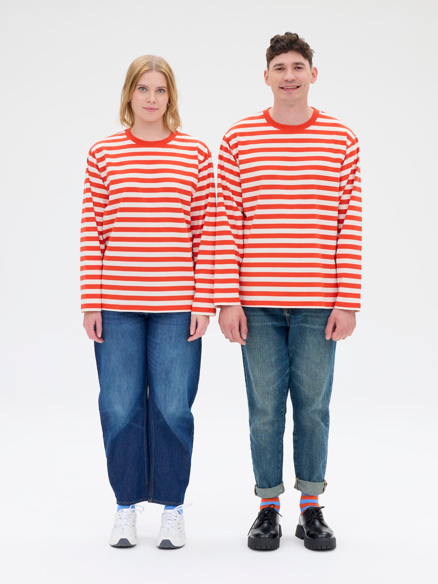 Classic red and white striped unisex shirt for many uses. The width of the stripe is 20 mm. The material is soft jersey, so the shirt is comfortable to wear. The shirt has long sleeves and a round neckline. If you want to buy the shirt for a woman, choose one size smaller than usual. Made in Portugal.
