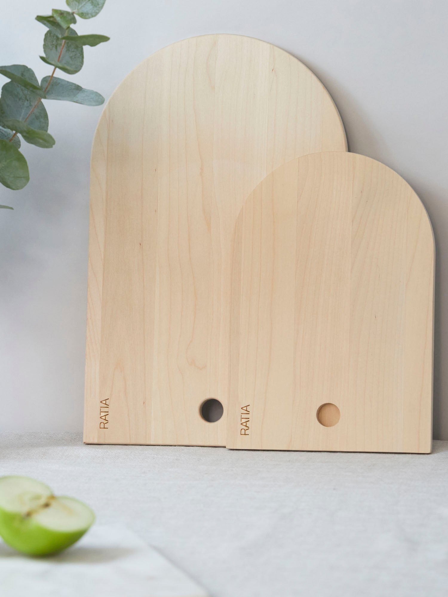 The beautiful roundness of Ratia's Unna series products is also visible in the cutting board. The board is suitable for both bread and vegetables. The stylish board is beautiful to display in the kitchen. The material used is domestic birch.