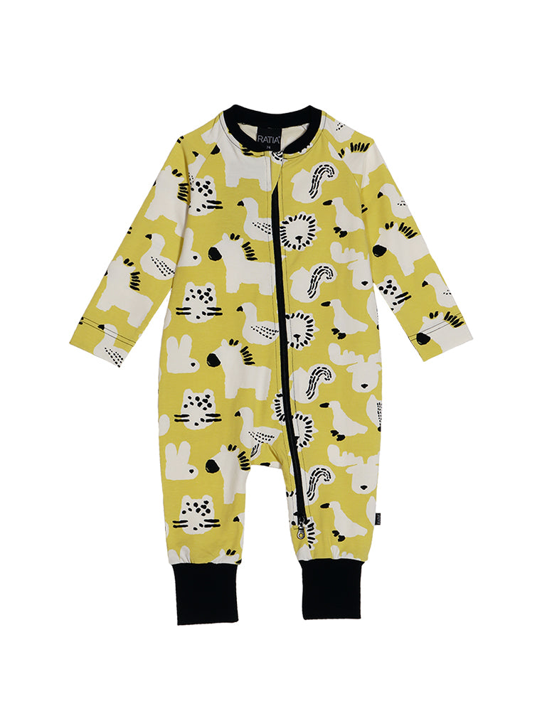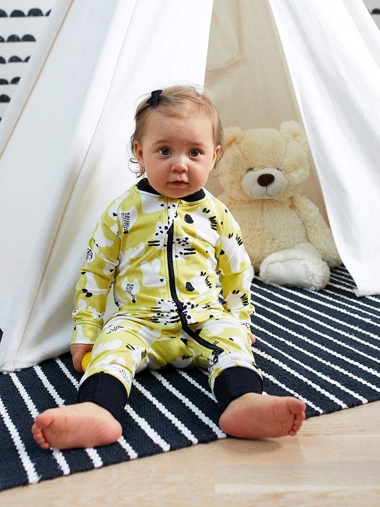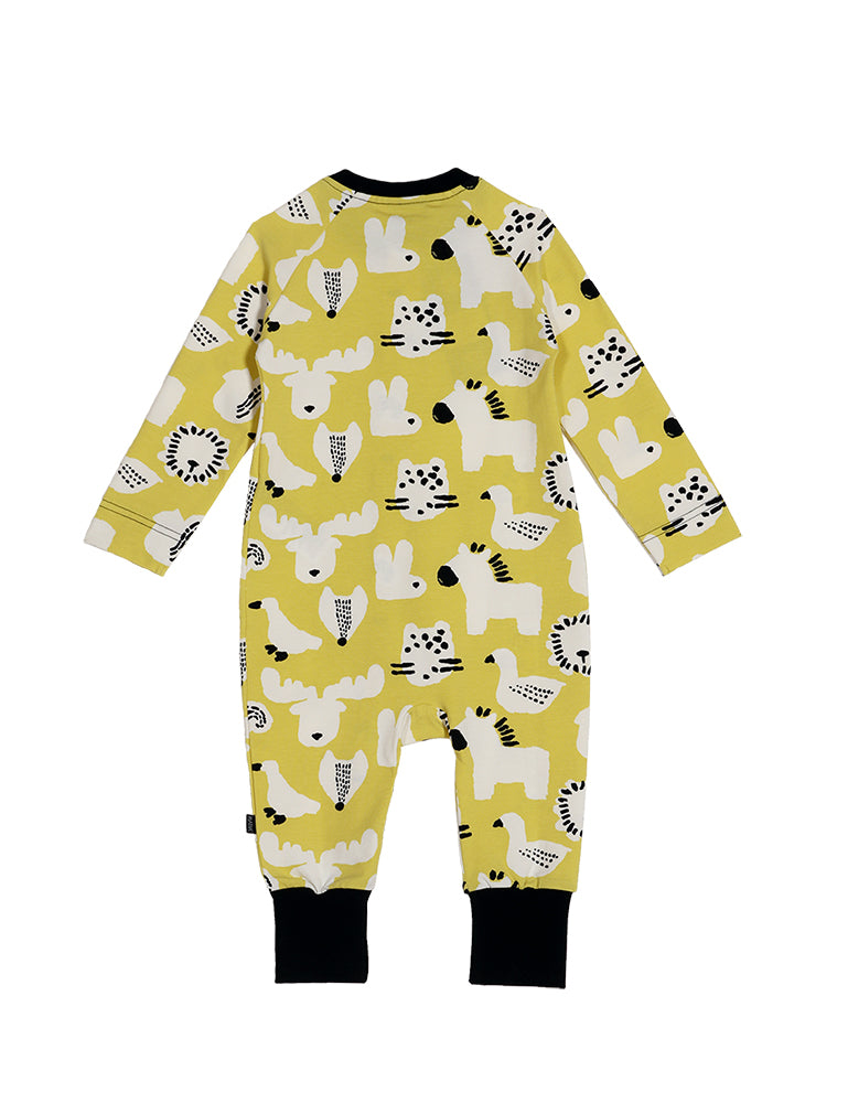 Vauvan pitkähihainen haalari, jossa hauska eläinkuvio. Pitkä 2-suuntainen vetoketju. Tuote valmistettu Portugalissa