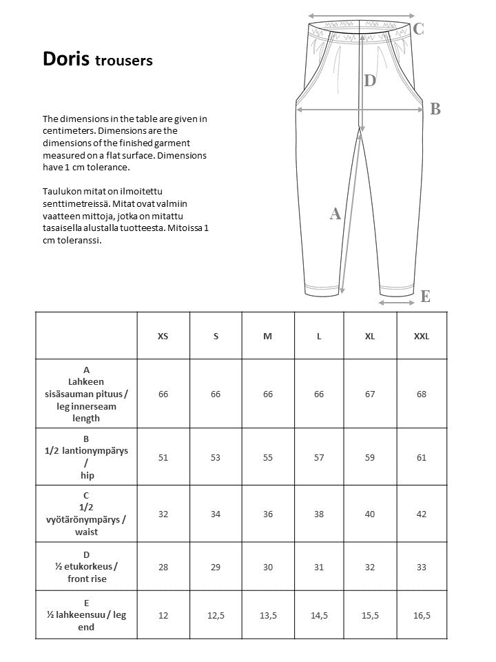 Naisten housut miellyttävästä puuvilla-elastaani trikoosta. Housuissa näyttävät taskut ja kuminauha vyötäröllä. Hieman kapeampi malli.