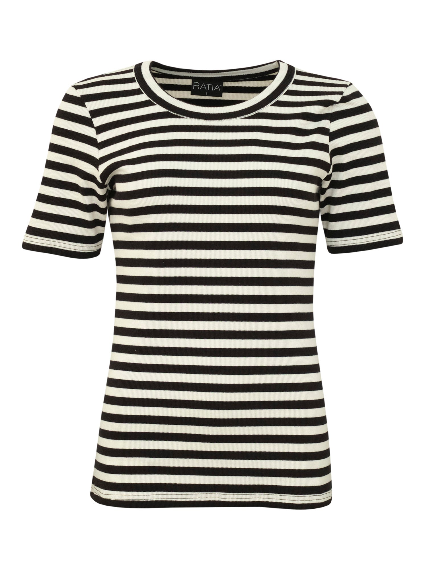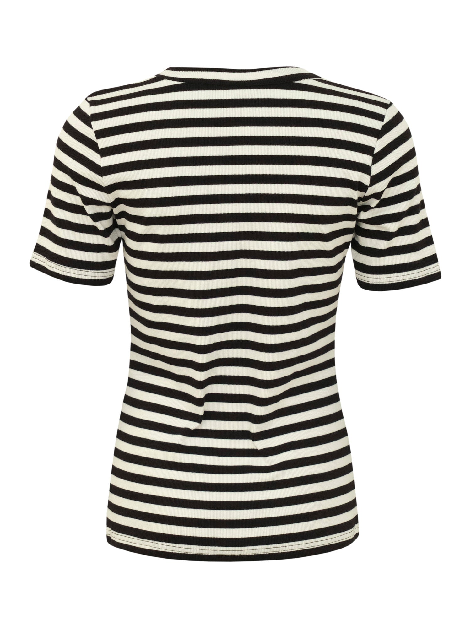 Lyhythihainen musta-valkoinen raita Brea ribbipaita on korkealaatuinen vaate, joka on helppo yhdistää moneen eri asuun ja tilanteeseen. Klassinen paita sopii niin housujen kuin hameidenkin kanssa ja on mukava päällä. Paidan ribbimateriaali on joustavaa ja helppohoitoista. Paidassa on pyöreä pääntie ja paidan pituus ulottuu lantiolle. Paidassa on väljä mitoitus. Pue farkkujen, hameiden ja neuleiden kanssa vuoden ympäri.