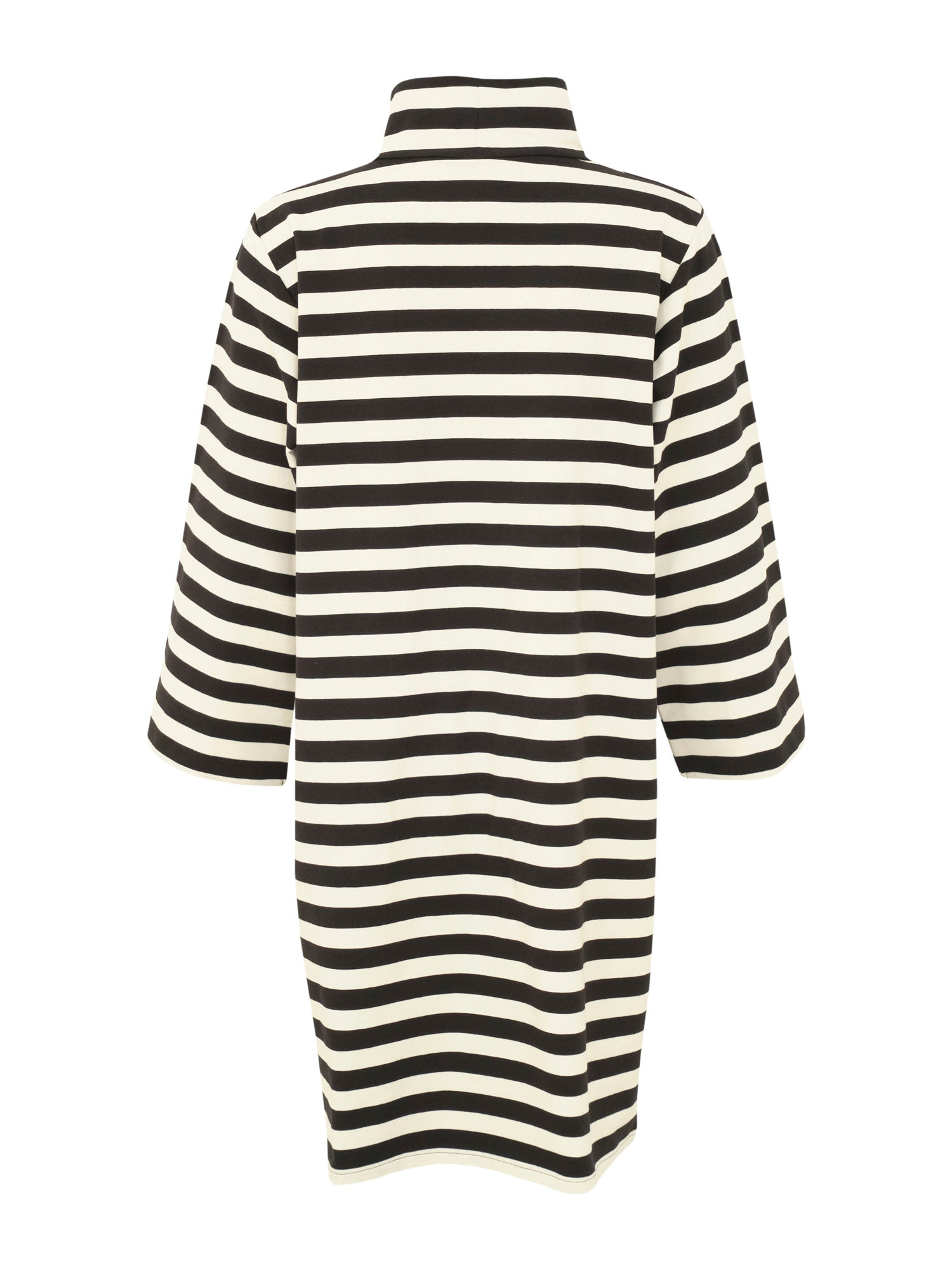 Musta-valko raidallisessa Niki mekossa yhdistyy klassinen tyylikkyys ja graafinen olemus. Loistava valinta arkeen tai juhlaan! Tyylikäs mekko on ihanan helppo ja huoleton valinta niin toimistolle kuin kaupungille. Asusteita vaihtamalla mekko muuntautuu myös juhlaan. Pue sukkahousujen, saappaiden ja huulipunan kanssa illallistreffeille tai leggingsien ja tennareiden kanssa rennompaan tilaisuuteen. Mekossa on levenevät hihat, rento poolo-kaulus, rento istuvuus ja a-linjainen leikkaus. Polvet peittävä pituus. Raidan leveys 20x20 mm. Materiaali on pehmeää, trikoota hieman vahvempaa ja ryhdikkäämpää joustocollegea, joka on helppohoitoista ja mukavan tuntuista päällä. Valmistettu Portugalissa.