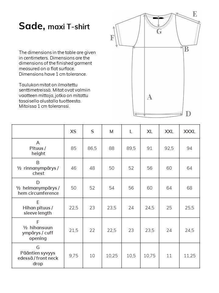 Naisten pitkä kuosillinen Papu-t-paita. Trendikäs pitkä t-paita sopii kivasti niin leggingsien kuin farkkujenkin kanssa. Linjakkaassa t-paidassa on pyöreä pääntie ja lyhyet hihat. T-paidan pituus koossa M on noin 88 cm. Materiaali on mukavaa puuvilla-elastaani-neulosta.