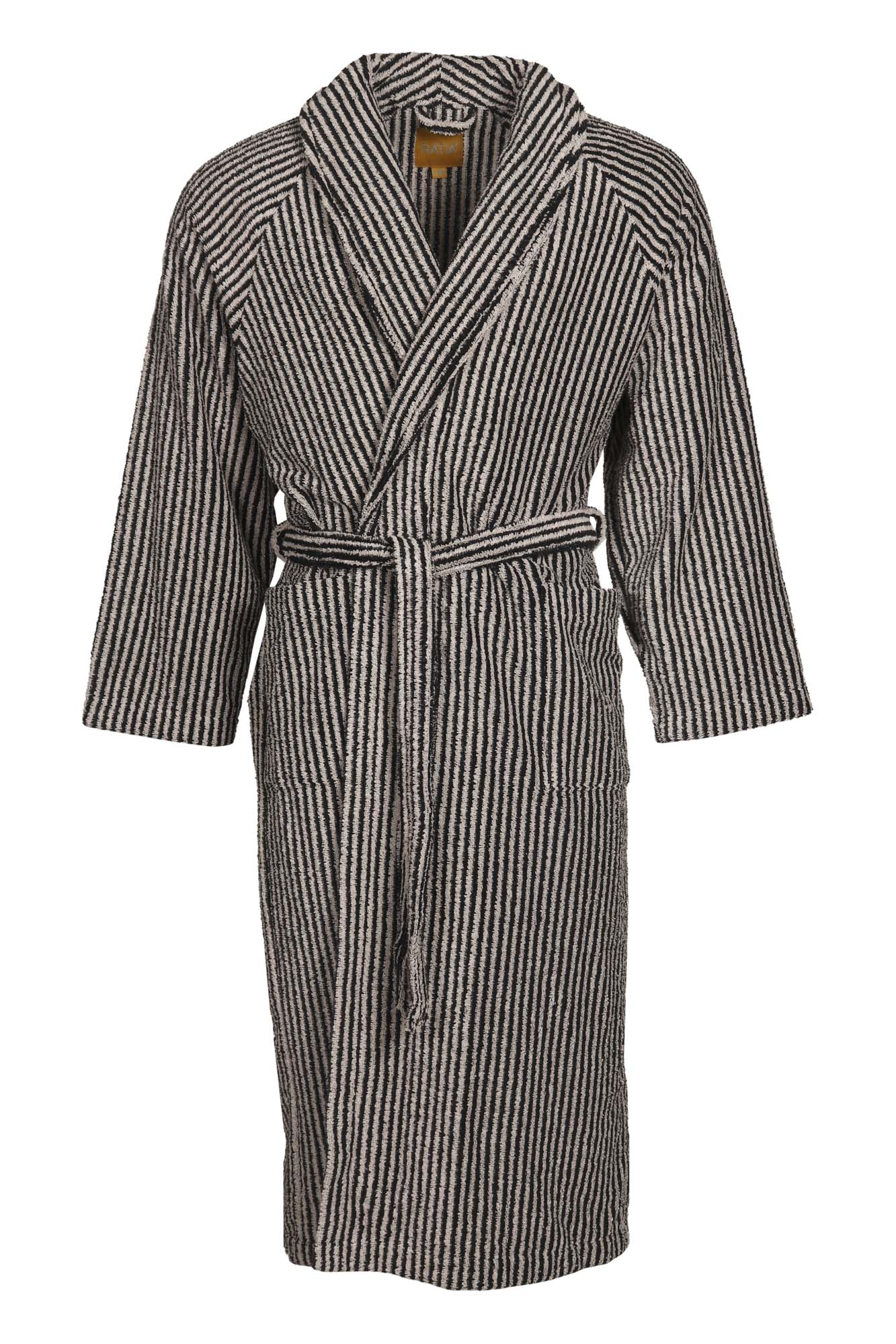 Unisex Kylpytakki Raita, Musta/Hiekka